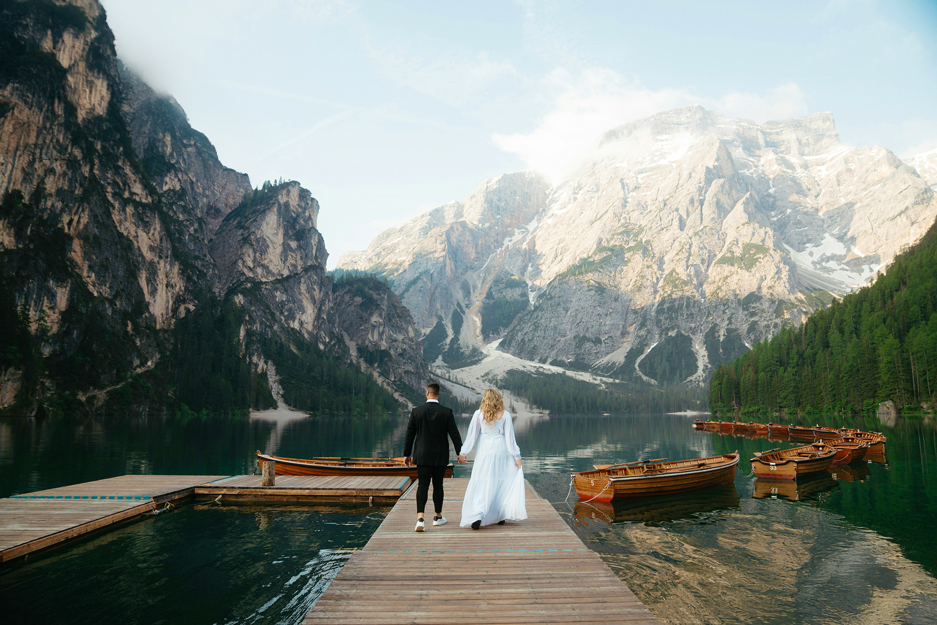 O Lago di Braies, joia das montanhas, é um dos lugares mais icônicos da região. Suas águas cristalinas, que refletem as montanhas ao redor, criam um cenário romântico e inesquecível. Caminhar pelas margens ou registrar momentos a bordo dos tradicionais barquinhos de madeira transforma cada foto em uma lembrança mágica.